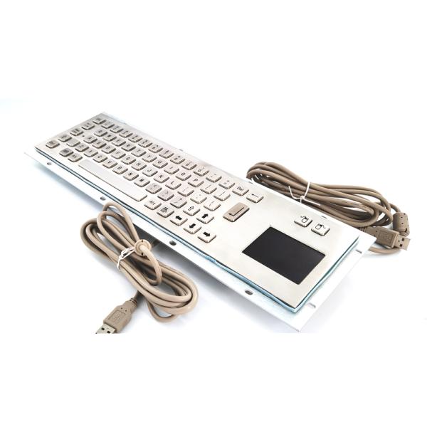 This Industrial Keyboard With Touchpad is equipped with a US keyboard layout and connected with a wired connection. It is made from 304 stainless steel material, providing a robust and durable solution for industrial and self-service kiosk applications. This touchpad keyboard is designed to provide high-performance and reliable operation even in the harshest working environments. It is IP65 rated, meaning it is dustproof and waterproof, and provides excellent protection against spills, dust and other environmental contaminants. The 304 stainless steel material makes the keyboard highly resistant to corrosion. It also offers a sleek and modern look, making it a great choice for any industrial or self-service kiosk application.